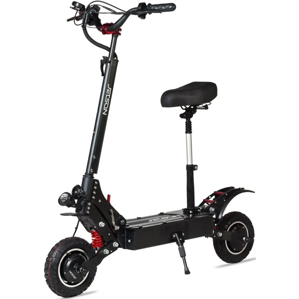 Электросамокат рассчитан на подростков и взрослое поколение. Внедрение современных инноваций и улучшенные характеристики вызывают интерес у продвинутых райдеров. Техника оснащена мощным двигателем 2400 Вт. Производитель позаботился об усовершенствовании показателей скоростных характеристик. Модель стремительно набирает максимальную скорость благодаря наличию полного привода. Электросамокат изготовлен из прочной стали и износостойкого полимера, при эксплуатации долго сохраняет свои первоначальные характеристики. Емкий аккумулятор быстро заряжается, продолжительно сохраняет заряд при движении.