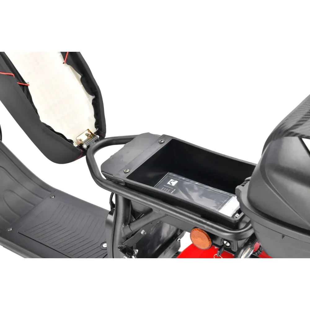 Модель оснащена литий-ионным аккумулятором емкостью 21 Ач напряжением 60 В. Быстрый разгон 24-61 км/час обеспечивается мощным движком 2500 Вт. Запас хода рассчитан до 60 км, ресурс АКБ восполняется за 7 часов. Стальная рама свободно выдерживает взрослого пользователя массой до 260 кг. Комбинированная подвеска мотоциклетная с пружинно-масляным типом гарантирует преодоление любых дорожных преград. Руль регулируется по высоте. Сидение имеет правильную форму. Пользователю придутся по душе дисковые тормоза на гидравлике, которые обеспечивают быструю остановку. Фара линзового типа со стробоскопами хорошо освещают дорогу в темное время суток. На руле расположен современный бортовой компьютер, отображающий основные технические параметры тс. Для быстрого оформления заказа предлагаем связаться с нашим менеджером по телефону.