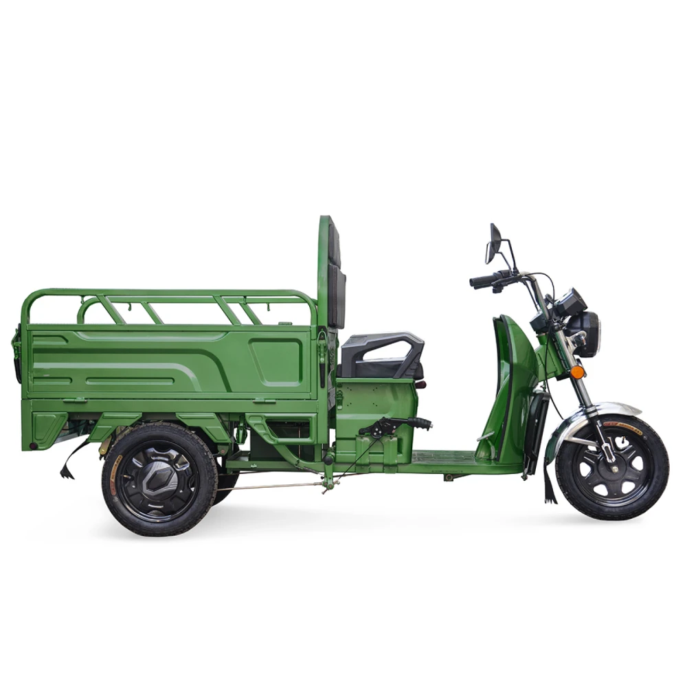 Модель представлена надежным двигателем 800 Вт и развивает скорость 25 км/час. Маневренность и сверхпроходимость обеспечивается гидравлической вилкой передней подвески с амортизацией. Достоинства и плюсы грузового электротрицикла несомненно оценят настоящие мужики. Мощная рама рассчитана на перевозку грузов 400 кг (110 кг сухого веса). Рулевую часть и широкое сидение можно регулировать по росту райдера для удобства поездок. Мощная батарея долго держит заряд и быстро заряжается за 8-10 часов. В кузове по необходимости можно устанавливать дополнительное пассажирское сидение. Оригинальная тормозная система позволяет быстро остановиться в форс-мажорных ситуациях.