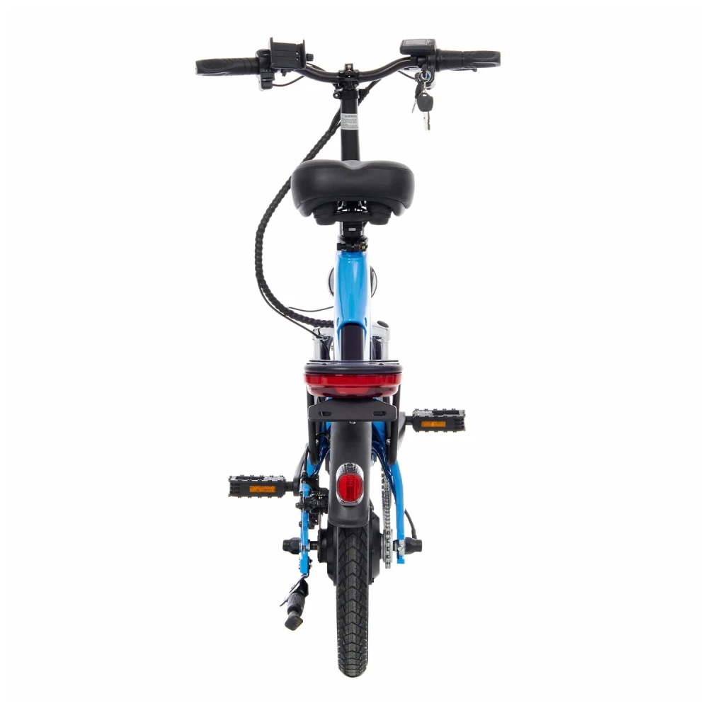16-дюймовые колеса обеспечивают отличную устойчивость, а мощность 500 Вт двигателя и задний привод делают поездки более плавными и уверенными. Благодаря емкости аккумулятора кейса 11 Ач и напряжению 48 В, вы можете наслаждаться длительными поездками без беспокойства о заряде.